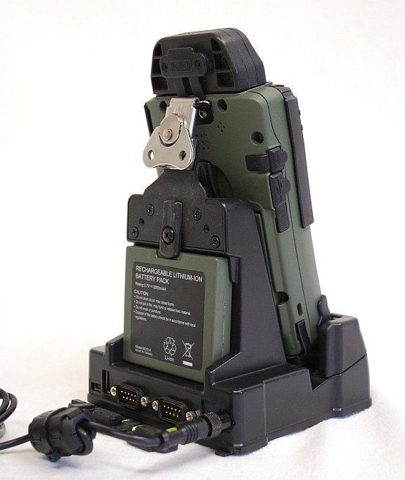 Folgendes Bild zeigt die Ladestation und Porterweiterung für den PDA BOB-M, ausgestattet mit folgenden Schnittstellen: 2x RS232, 1x USB 2.0 host, 1x USB client , 1x Netzanschluß, 1x LAN RJ45, 1x Ladeport für eine Ersatzbatterie, welche gleichzeitig zum Gerätebetrieb geladen werden kann. Zur Stromversorgung können Bordstrom (10 V~32 V) und AC Adapter (230/110 V) angeschlossen werden. Abmessung: 140mm (B) x 170mm (H) x 112mm (T) Gewicht: 470 g